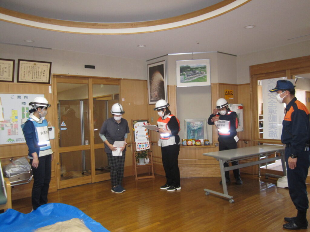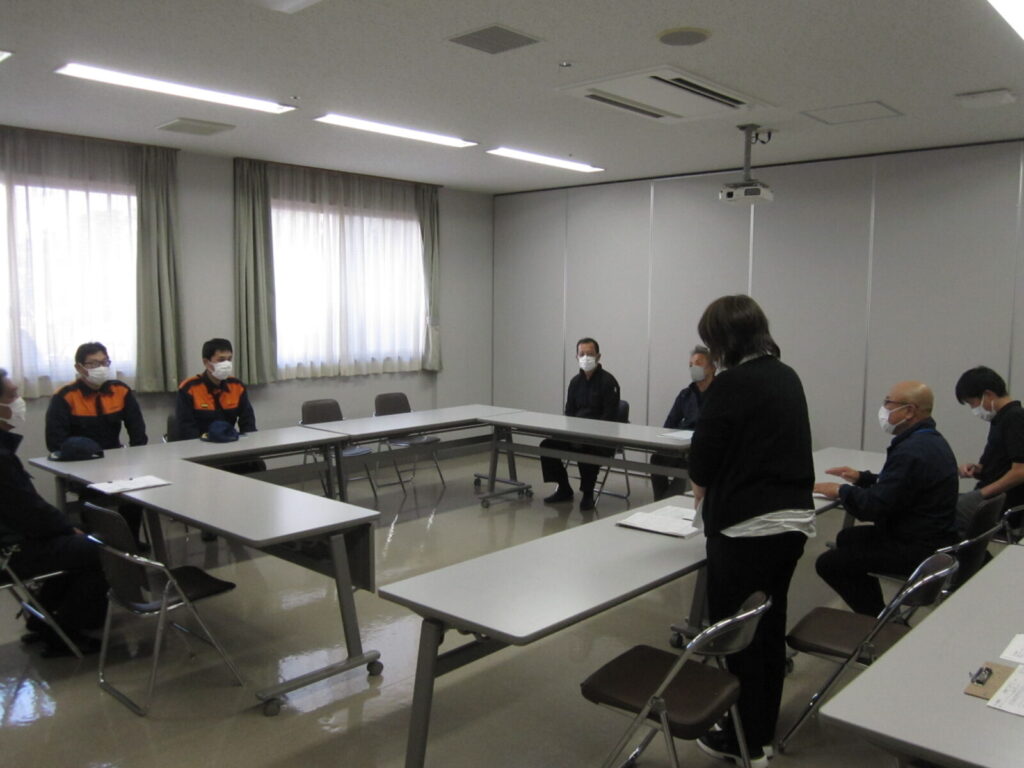 最終報告が行われ、その後参加者様より講評をいただきました。消火訓練では、ピン(ピンを抜く)・ポン(ノズルを抜く)・パン(握り噴射する)の合言葉を教えていただきました。頂いたご意見を今後に活かしていきたいと思います。