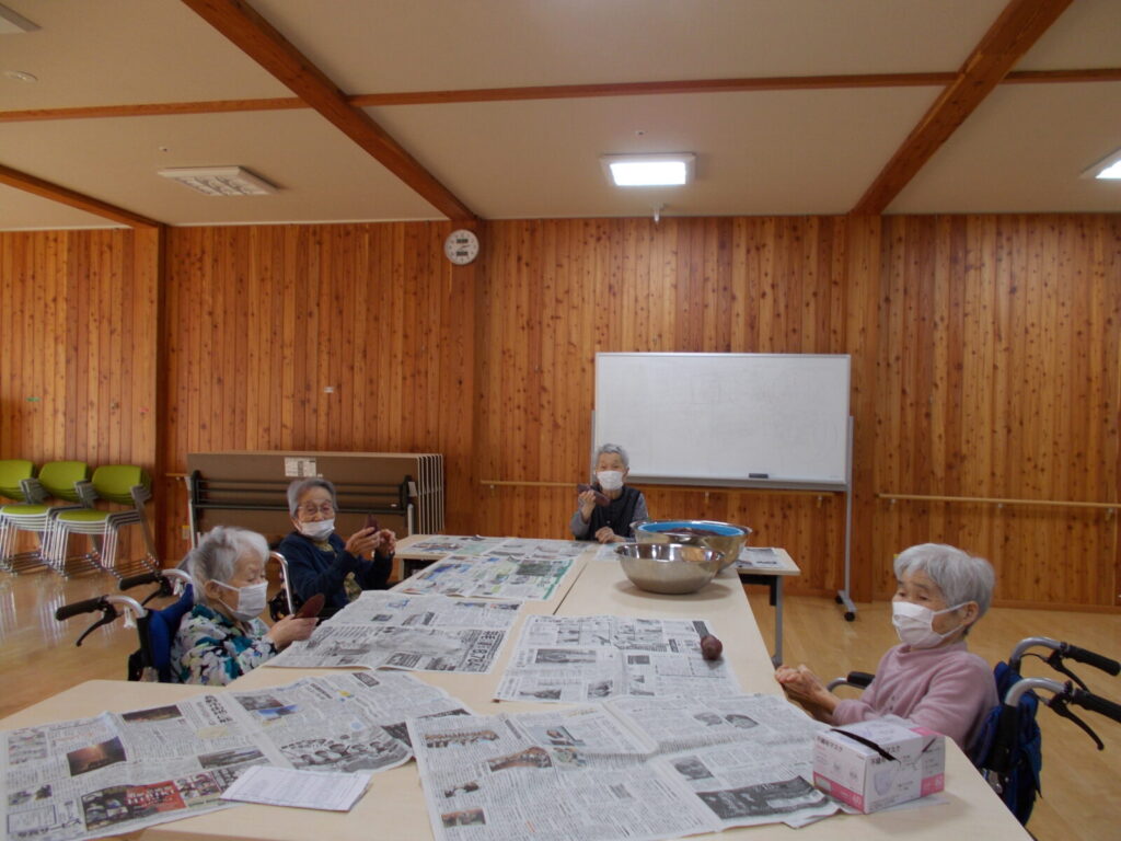 やきいも会を開催しました。 2025.11.26 「やきいもを作る準備をしています。」 「焼き芋を焼いています。おいしくできるかな?」 やきいもができあがり!おいしそう! やきいも会のはじまり!はじまり! う~ん!おいしいね~(^^♪