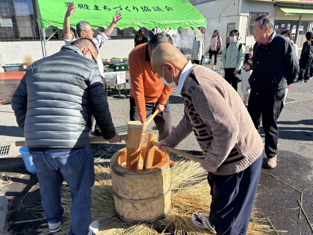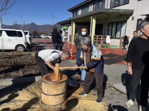 今年も豊殿の家と隣接する地域のボランティアさんが運営する、「ふれあいサロンhinata boccoとよさと」で年末恒例の餅つき行事が開催されました。