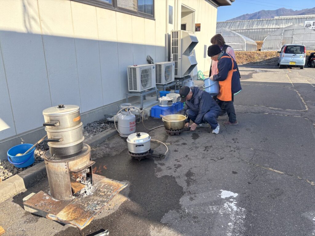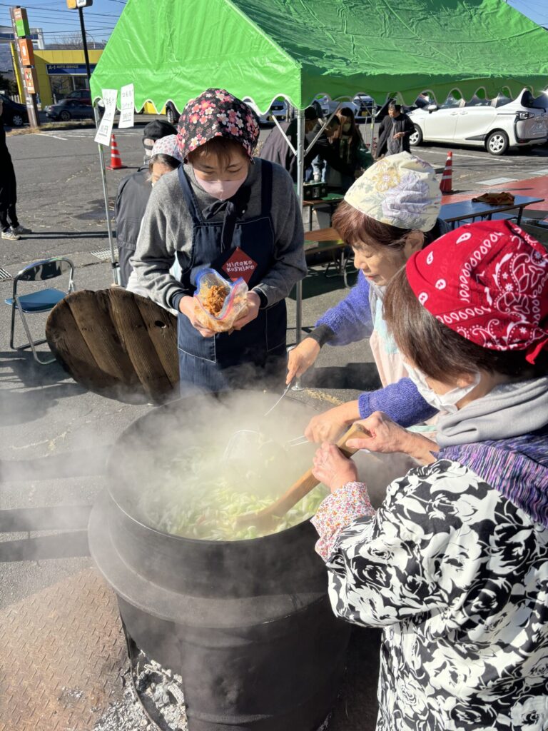 前日からボランティアさんが協力して、もち米を仕込み、当日は大鍋いっぱいの豚汁も準備。