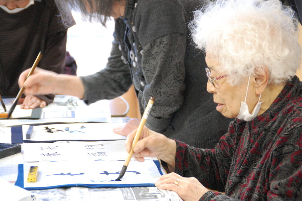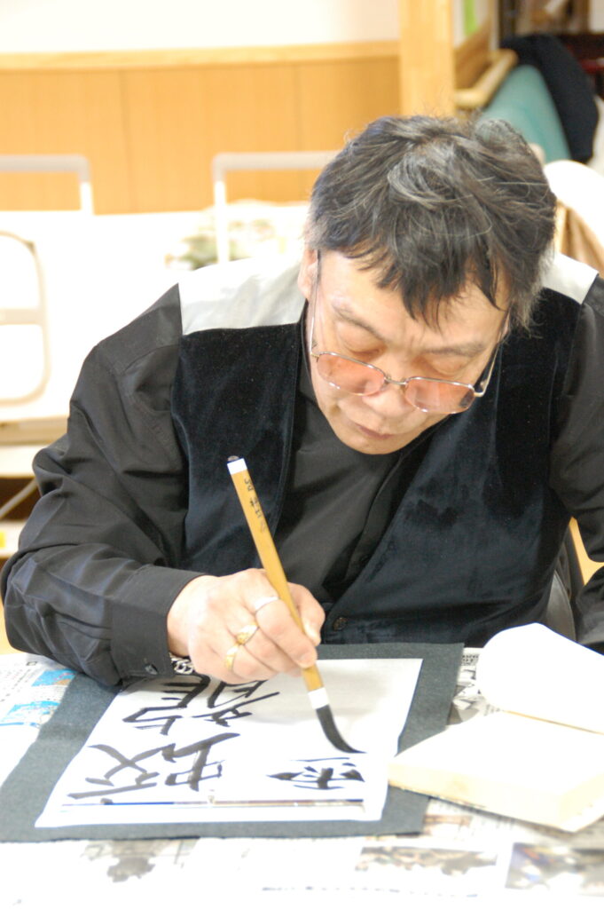 利用者様、お一人ずつ新年の抱負や願い事など書き初めにして頂きました。