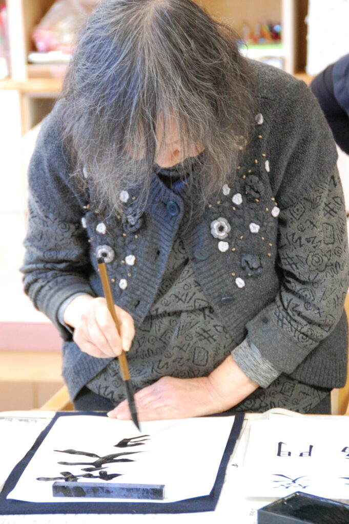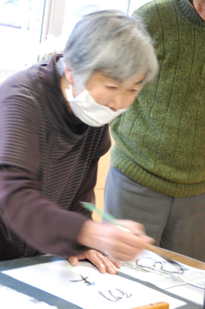 真剣な眼差しで達筆に書かれる方、