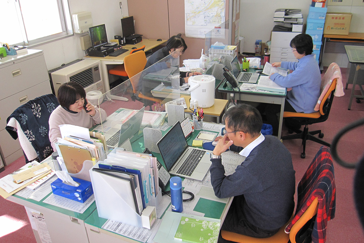 主任介護支援専門員1名、社会福祉士1名、保健師・看護師2名の3職種が配置され、地域住民の皆さんが住み慣れた地域で安心して生活できるように、関係職等と連携しながら地域で総合的な支援を行っています。